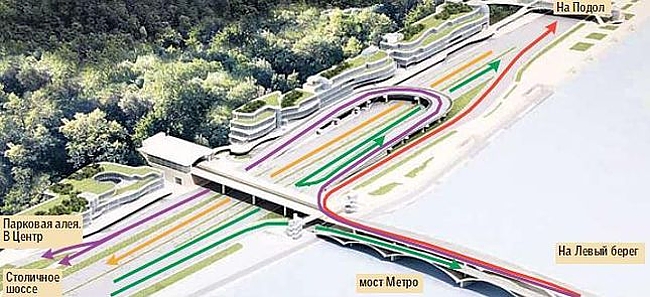 Правда, дорожники считают, что новая развязка улучшит жизнь водителям в одном месте, а в других осложнит. Например, будут образовываться пробки перед светофором на пересечении с Днепровским спуском, куда будут упираться машины, едущие со стороны моста Метро и Почтовой. Эту проблему уже после Евро-2012 хотят решить с помощью строительства еще одной эстакады в этом месте.