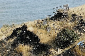 В керченском селе Курортное старое кладбище сползает в Азовское море. Необратимые оползневые процессы и процессы эрозии разрушают мыс Зюк, на котором находятся захоронения.
