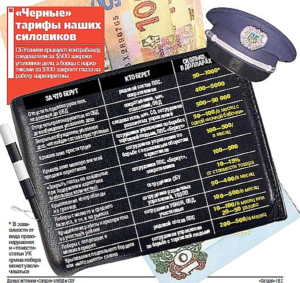 Львиная доля незаконной прибыли, признаются наши источники, идет в карманы начальства МВД. «Наиболее доходными в милиции считаются руководящие должности в районах с большим количеством рынков, уличных баров и «наливаек», а также службах, контролирующих бизнес, наркотики и проституцию. В разрешительных органах МВД зарабатывают на выдаче «левых» разрешений на оружие. Взятки у нас называют «тормозками». Это деньги в конвертах, их дарят командирам на все праздники», — утверждает другой наш источник в одесской милиции Андрей.