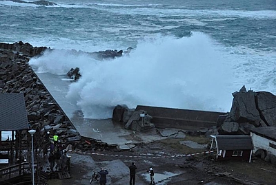 Сильный ураган бушует на севере Европы. В Норвегии и Дании 20-метровые волны сносят пирсы и смывают в море людей.