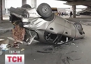 В Киеве такси "приземлилось" на крышу, упав с 6-метровой высоты (видео)