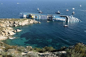 Круизный лайнер «Коста Конкордия» в ночь с 13 на 14 января потерпел крушение в Средиземном море близ острова Джильо у побережья Тосканы. Корабль налетел на скалы на мелком участке прибрежных вод, получил пробоину длиной порядка 70 метров и завалился на бок на 80 градусов, почти полностью уйдя под воду.