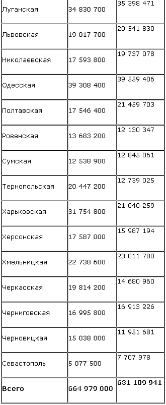 На втором месте Тернопольская область - 12 739 025 грн из 20 447 200 грн, третья – Житомирская (14 588 071 из 19 657 600 грн). Далее следуют Черкасская (14 680 960 из 19 814 200 грн), Днепропетровская (49 083 944 из 54 100 800 грн). и Киевская (31 159 554 из 36 671 600 грн. области).