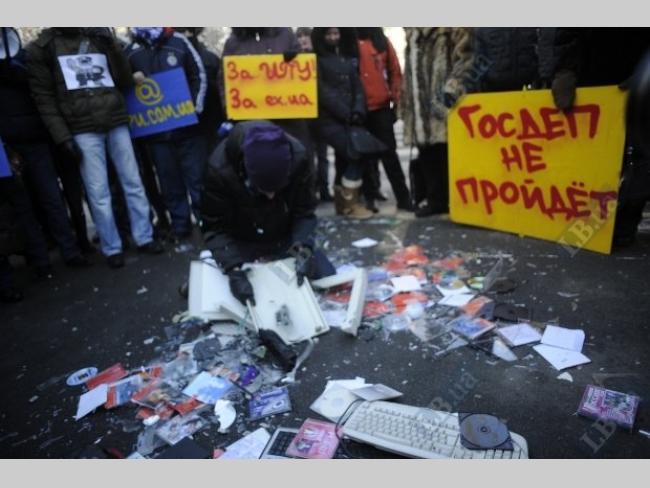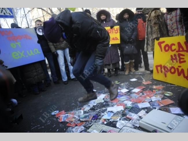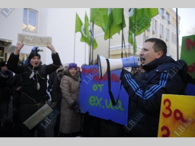 Пользователи закрытого вчера управлением МВД сайта Ex.ua совместно с активистами Интернет партии Украины провели протест против действий силовиков.