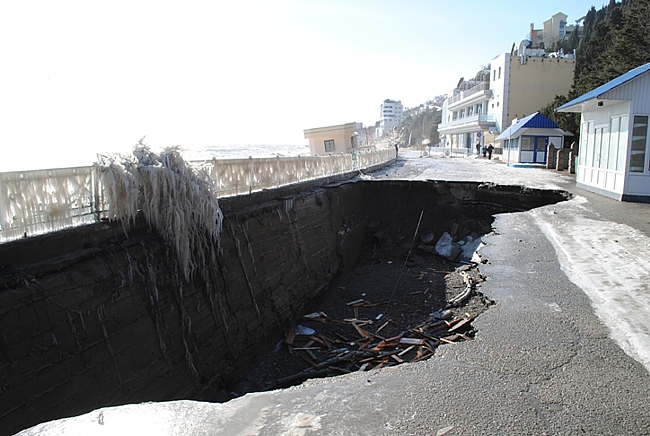Ранее значительные разрушения потерпели также центральная набережная Алушты и прибрежная зона Партенита.