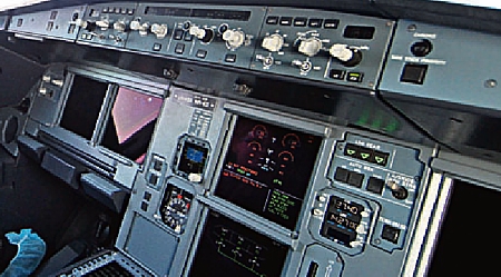 Кабина. Аэробус управляется не штурвалом, а джойстиком