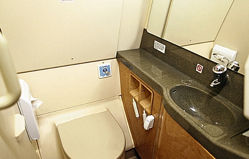 Министры в небе живут скромнее. В их отсеке — 12 кресел из светло-бежевой кожи и кожзама, экраны и несколько шкафчиков для одежды в стенах. Принимать душ на борту им не положено.