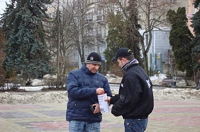 В Тернополе представители общественной организации «Сокол» провели на улицах города сбор средств «для отправки» президента Украины Виктора Януковича в ссылку.