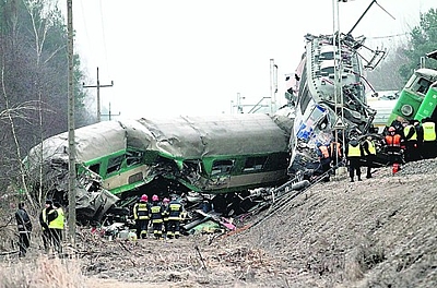 Крушение поездов случилось около девяти вечера в субботу, 3 марта, на юге Польши — в районе городка Щекоцины (Шленское воеводство). Два пассажирских поезда столкнулись лоб в лоб. По предварительным данным, это могло произойти из-за ошибки диспетчера. Состав «Перемышль—Варшава» двигался по своей колее, но на занятый путь вышел поезд «Варшава—Краков». Столкновения избежать не удалось — вагоны просто сплющило друг о друга. Пока известно о гибели 16 человек, еще около 60 людей получили травмы.