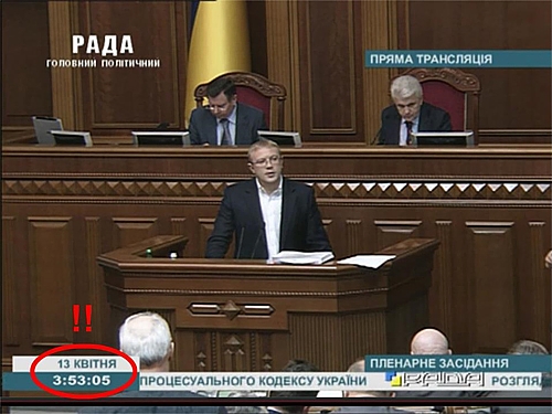 В ночь с четверга на пятницу, 13 апреля, Верховная Рада приняла во втором чтении и в целом проект Уголовно-процессуального кодекса. Решение было принято в 4:13 утра. При этом физически в зале находилось около 50 депутатов от большинства.