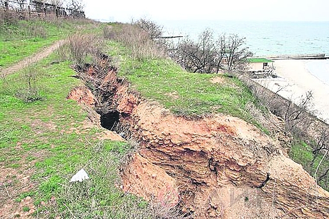 Об угрозе масштабных оползней в районе одесского побережья говорят каждый год. Однако в нынешнем сезоне угроза обвалов стала еще серьезней — огромные трещины появились и потихоньку расширяются в Черноморке и на 16-й ст. Фонтана. Черноморку можно смело назвать чемпионом по оползням среди наших пляжей — за год волны уносят по 1,5—2 метра берега.