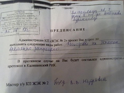 Как ниже указано на бланке, "в противном случае на вас будет составлен административный протокол в Калининском районном исполнительном комитете".