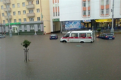 "Залило магазины, расположенные в подвалах жилых домов, упало дерево на крышу дома. завален вход в дом, возможно, повреждена газовая труба… По Советской в районе ост 8 марта провалился асфальт, наши помогли нескольким водителям легковушек вытащить машины на сушу, из общественного транспорта эвакуированы около 50 человек. Пострадавших нет. Сейчас идет откачка воды силами коммунальщиков, помогают и подразделения МЧС. В основном, это подвалы админзданий", – пишут читатели.