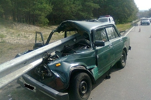 По данным ГАИ, водитель "Жигулей" потерял управление – и легковушка наехала на металлическую ленту отбойника. Ограждение буквально прошило салон авто. Отбойник вместе с крышкой капота вышел через заднее окно