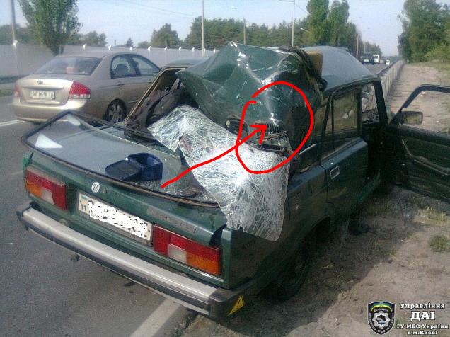 Необычное ДТП произошло в столице – на улице Днепроводской в Оболонском районе дорожное ограждение насквозь прошло через салон автомобиля ВАЗ. В автомобиле ехала семья из Вышгорода – отец и мать с трехлетней дочерью.