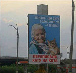 Как сообщал MIGnews.com.ua, в Тернополе установили билборд с бабушкой и котом, аналогичный тому, который был заклеен в Днепродзержинске.