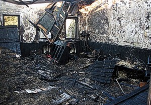 Здание иеговистов в этот раз пострадало частично. В их приходе сгорела только пластиковая облицовка стен, а деревянная крыша уцелела благодаря обработке кровли антивозгорающим веществом.
