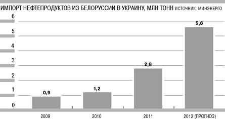 Белоруссия сейчас активно наращивает поставки топлива в Украину. С 2009 по 2011 год ввоз нефтепродуктов из Белоруссии вырос на 64,8%, до 2,8 млн т (см. диаграмму). А только за I полугодие 2012 года импорт увеличился на 72,7% (800 тыс. т). Наиболее весомый вклад в увеличение динамики импорта нефтепродуктов из Беларуссии сделала компания "Трайпл", производящая биодизельное топливо, которое в последние три месяца занимает более половины поставок дизтоплива из Белоруссии — 150-170 тыс. т.