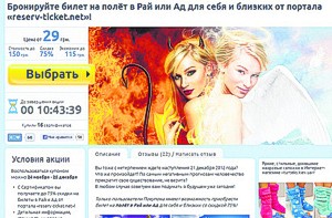 «А куда нынче модно лететь — в ад или рай? — спрашивает один из них. — Во время перелета кормить будут, или с собой надо брать еду?» Организаторы акции говорят, что обещают 100%-ный возврат денег в случае «непопадания в Рай или Ад». Они уточняют, что акция предназначена только для хорошего настроения — покупатель получит письмо с сувенирным сертификатом, удостоверяющим внесение его имени в «Книгу Света» или в «Скрижали Сатаны», а также резервирование места в Раю или Аду, билеты на полет в рай первым классом (чтобы не подниматься по ступеням) или на свободное падение в Ад, а также вип-удостоверения, чтобы спокойно перемещаться в Аду или Раю и путеводители. На вопрос, почему Ад дороже, продавцы билетов говорят, что там, по их мнению, должно быть намного веселее. «Покупают сертификаты довольно много, — сказали нам авторы идеи. — Чаще всего один покупатель берет по 5—6 пакетов, чтобы подарить друзьям».