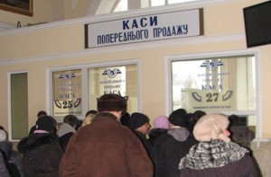 На втором этаже одесского ж/д вокзала — не протолкнуться. К кассам предварительной продажи билетов выстроились огромные очереди, по 40—50 человек — в каждой. При этом, касс работает 4 из 6-и. Но не факт, что, простояв 2—3 часа, билет таки удастся купить. «На 29, 30 и 31 декабря на Киев нет ни купе, ни плацкарта. Есть верхние полки на 27 и 28 число. Обратно могу дать билеты только на 4 января», — категорично заявляет нам кассирша. Такая же ситуация — с билетами на Львов и Харьков.