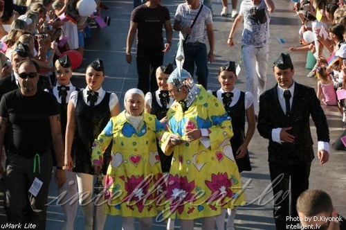Телеоператоры стали снимать, когда все участники праздничного шествия были в сборе на уходящем в залив конце подиума. Оттуда, из пучины морской, они и начали свой звездный парад. А сначала были версии, что гости приплывут на яхте..