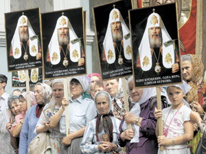 Самых активных и инициативных верующих корреспондент «НГ» встретила у стен Киево-Печерской лавры. В субботу они ожидали прибытия Патриарха Алексия II с плакатами: «Мы остаемся в лоне Русской православной церкви!», «Россия, Украина, Белоруссия – это Святая Русь», «Автокефалия – путь в ад». От бесед с журналистами прихожане отказывались, но из обрывков бесед можно было понять, что их беспокоит вопрос о создании в стране единой Украинской поместной православной церкви, прихожане РПЦ с «раскольниками» объединяться не хотят.