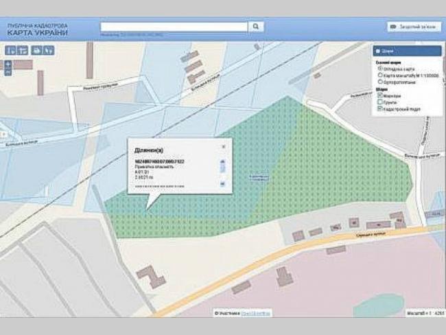 Как сообщал MIGnews.com.ua, в электронных наслоениях публичной кадастровой карты содержится огромный объем информации: цифровая карта Украины (ортофотоплан), граница Украины, границы областей, границы районов, границы населенных пунктов, индексно-кадастровые карты, земельные участки и их границы, кадастровый номер участка, форма собственности, целевое назначение, площадь, а также карта почв Украины.