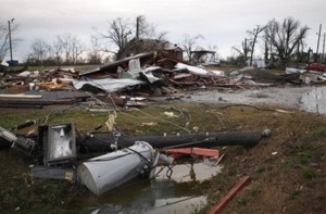 На юге американского штата Миссисипи бушует торнадо, которое сопровождается проливным дождем.