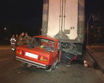 По словам свидетелей, ВАЗ ехал в сторону Петровки, на перекрестке с улицей Полярной водитель проскочил на красный свет. Не проехав и 300 метров, автомобиль врезался в припаркованную фуру. Сам же водитель фуры уверяет, что габаритные огни у него были включены. И не увидеть его было невозможно.