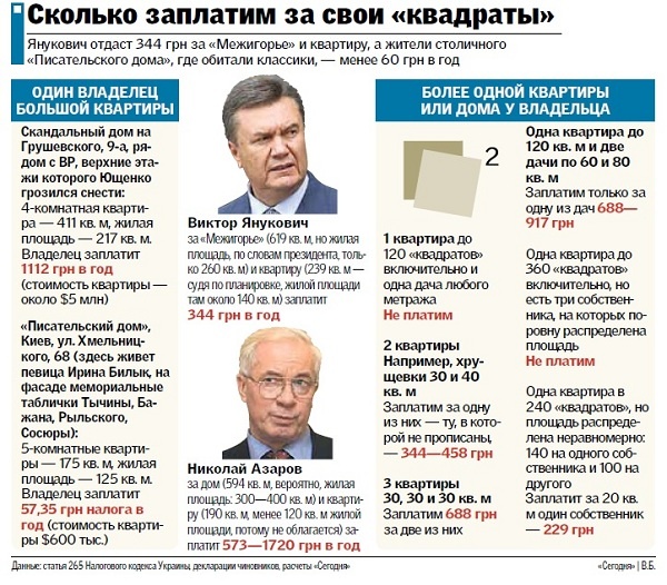 Какой налог заплатит Янукович за Межигорье, а Азаров за апартаменты в Киеве