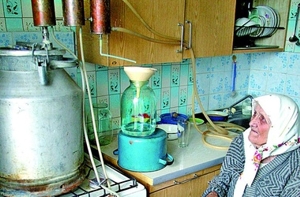 Только поможет ли такой метод — вопрос. Ведь не имея возможности купить алкоголь в магазине, люди ищут другие способы выпить, желательно еще и недорого. «Чем дороже водка, тем больше у меня продажи», — говорит нам Александра Николаевна из села под Киевом, которая варит самогон уже 10 лет. Сама она не продает — отдает посреднику, а он уже сбывает на базаре в райцентре. «С этого и живу. Моей пенсии и на хлеб не хватит. На килограмм сахара у меня получается литр самогонки, вот вам и себестоимость — 5—6 грн плюс дрожжи. Я продаю по 12 гривен, а там уже они перепродают по 20 — в полтора раза дешевле самой дешевой водки (30 грн), а качество даже лучше», — говорит пенсионерка. По ее словам, она такая в селе не одна — так промышляет каждый второй. Говорит, что в селе даже опасно с кем-то ссориться. «Вот, если кто-то кому-то насолит — то сосед на соседа часто из мести милицию натравливает. Тогда они приходят, все ломают и забирают», — говорит пенсионерка. Николай из Донецка раньше варил самогонку сам, но потом бросил. Теперь этим промышляет соседка. «Сколько на нее жалоб было, соседи в милицию писали, чтобы их мужей спасли от нее — а ей хоть бы что. Мы ее называем «карбидка» (карбид раньше в самогон добавляли). Торгует возле пункта приема бутылок и макулатуры. Вот мужики насобирают всякого хлама на мусорках, сдадут — и к ней... Милиция подходит каждый день, берет мзду, и дальше идут. При этом заходят за поворот, видят, мужики пиво пьют после работы — давай их под руки и вести штрафовать», — рассказывает нам Николай. «Боремся как можем. Это нарушение закона», — говорит замначальника пресс-службы МВД Сергей Бурлаков.