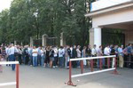 А у касс тем временем — ажиотаж. Направляюсь поближе к окошкам, но натыкаюсь на кордон омоновцев: "Куда?!". Странный вопрос! Оказывается, в "Лужниках" принято во время повышенного спроса на билеты подпускать к кассам болельщиков небольшими партиями, тогда как основная очередь томится за ограждением. Весьма полезная практика. А очереди, надо сказать, "километровые"...