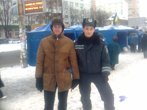 Киевский милиционер Максим Алейник и его неизвестный друг