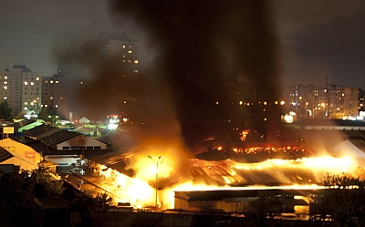 Масштабный пожар в Киеве: ночью дотла сгорел рынок на Оболони (видео)