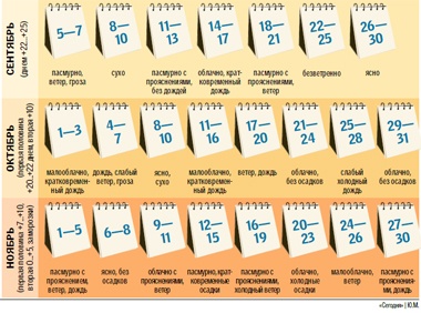 «На следующей неделе мы уже вернемся к нормальному температурному режиму — в пределах 20—26 градусов. Осадков практически не будет. Возможны разве что небольшие дожди на востоке страны. Можно даже сказать, что начнется одно из первых «бабьих лет». Атмосферные фронты, осадки и похолодание, безусловно, будут возвращаться первую половину осени, но на смену им будет снова приходить теплая и солнечная погода», — рассказал «Сегодня» замначальника Гидрометцентра Анатолий Прокопенко.