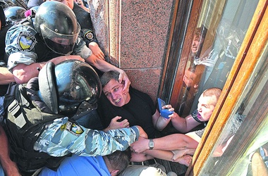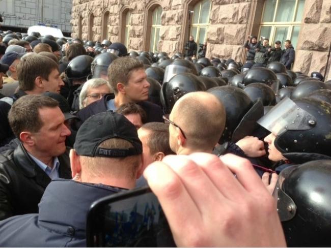 Внутри помещения на первом этаже находятся около 100 бойцов Беркута, которые охраняют вход, через который депутаты и журналисты проходят в КГГА. У здания мэрии в настоящее время митингующих нет.