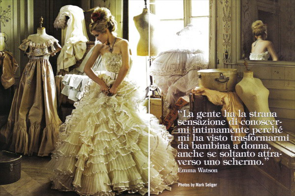 Английская актриса Эмма Уотсон, играющая роль Гермионы Грейнджер, одной из главных героинь серии фильмов о Гарри Поттере, снялась в фотосессии для сентябрьского номера итальянского издания Vogue.Процесс превращения Эммы Уотсон из девочки в женщину запечатлел известный фотограф Марк Селиджер.