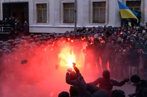 Напомним, 1 декабря в Киеве произошли многочисленные стычки участников массовых акций с правоохранителями на ул. Банковой неподалеку от Администрации президента. Люди в масках прибыли на Банковую на грейдере и пытались прорваться через кордон милиции, обеспечивающий охрану. После чего "Беркут" зачистили улицу Банковую.