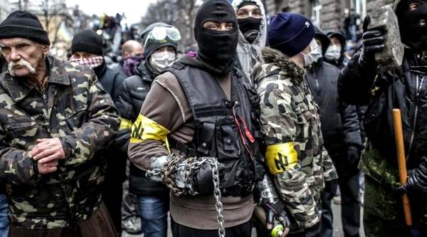 А вот эти же, самозванные и никому до сих пор неизвестные «националисты» на Банковой перед началом штурма: