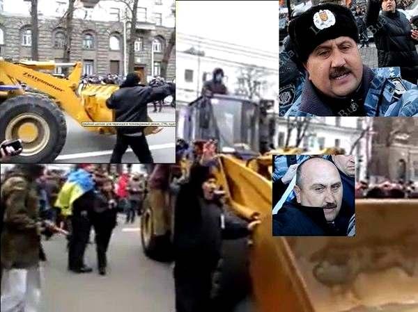 Журналисты обращают внимание, что приказы трактористу и призывы «на штурм» выкрикивает мужчина, очень похожий на полковника милиции, заместителя командира столичного полка милиции особого назначения «Беркут» Кусюка Сергея Николаевича (Кусюк Сергей Николаевич).
