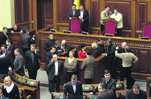 ПОРАБОТАЛИ. Вчера Кабмин и Рада поменялись ролями. Несмотря на пикет у здания правительства, его сотрудники, включая высшее руководство, уже вышли на работу и провели заседание. Чего не скажешь о слугах народа: не успел спикер Владимир Рыбак объявить об открытии сессии, как оппозиционеры заблокировали Раду: кресло Рыбака окружили 20 депутатов от «Батькивщины» и УДАРа, а еще 50 — президиум и трибуну. Они кричали, что не разблокируют, пока не выполнят их требования, причем, наконец, вспомнили о Юле и потребовали ее освобождения. Спикер оценил ситуацию и закрыл заседание.