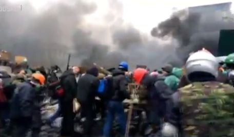 В течение ночи, несмотря на перемирие, на баррикадах Майдана не утихали огонь, взрывы, выстрелы оружия и фейерверков, со стороны силовиков активистов поливали водой.