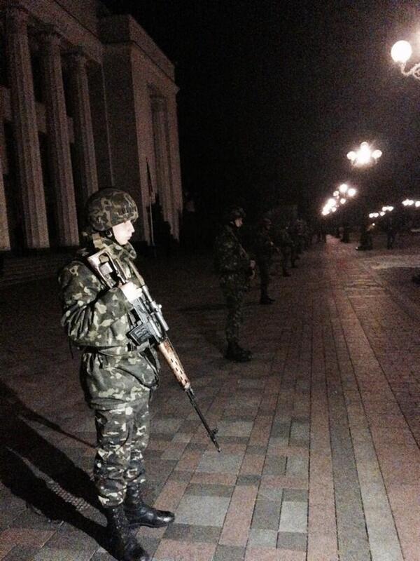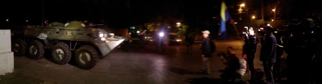 В 2.15 под зданием Кабинета министров собрались журналисты, приехали два БТР, потом "куча "спецназа" расположилась вокруг Верховной рады Украины, сообщает Выбрановский.