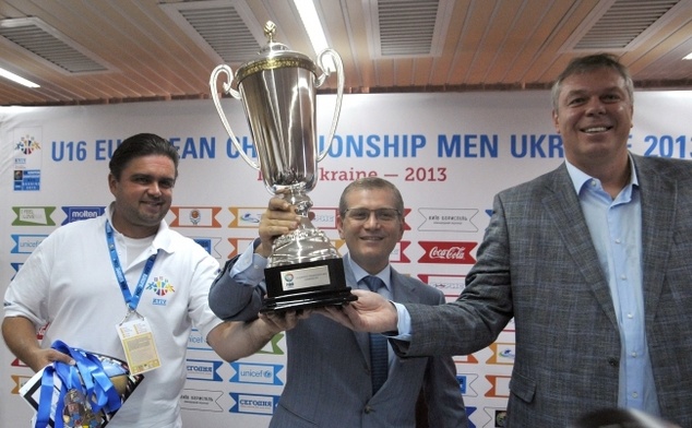 6 августа 2013 года: директор турнира «Евробаскет 2015» Маркиян Лубкивский, вице-премьер-министр Александр Вилкул и президент Федерации баскетбола Украины Александр Волков (слева направо).