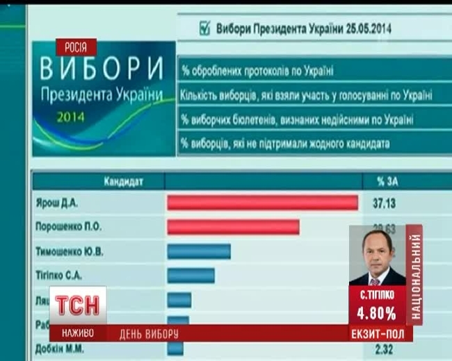 Информация российского телеканала ОРТ о якобы победе Дмитрия Яроша на президентских выборах в Украине является следствием спланированной и подготовленной провокации против Украины.