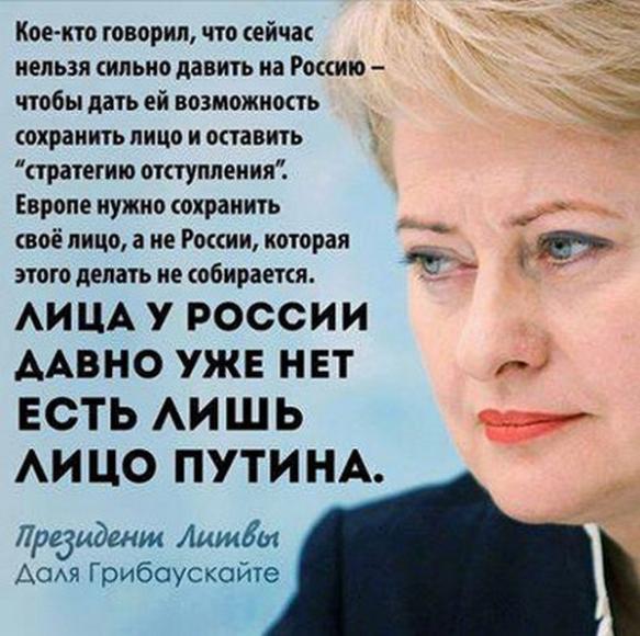 «Путин использует национальный вопрос как повод для захвата чужих территорий. Именно так поступали Гитлер и Сталин. Такие аналогии абсолютно уместны», — заявила литовский президент, передает РБК.
