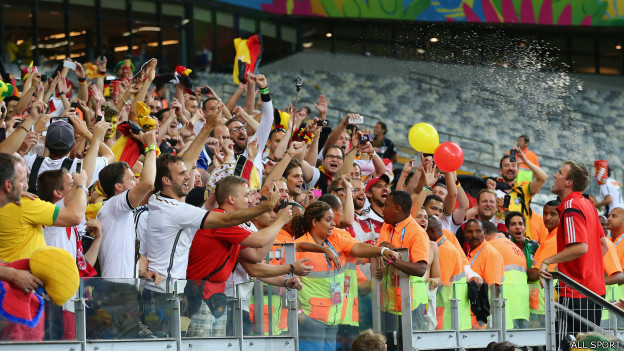 Болельщики сборной Германии ликуют на стадионе "Минейран"