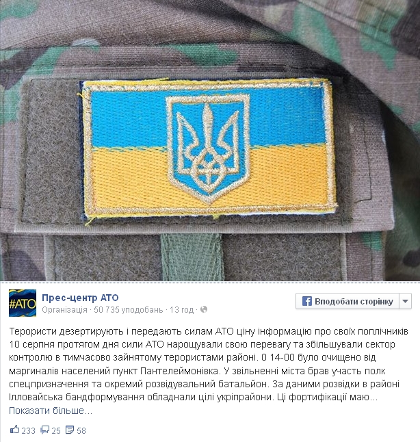 Сили АТО зачистили від терористів населений пункт Пантелеймонівку, а також закріпилися в районі Іловайська, готуючись до завершального етапу операції зі звільнення міста, а, тим часом, бойовики почали масово вдаватися до дезертирства.