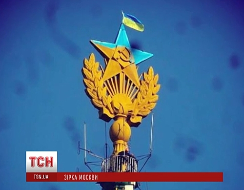В Москве над легендарной сталинской высоткой подняли флаг Украины