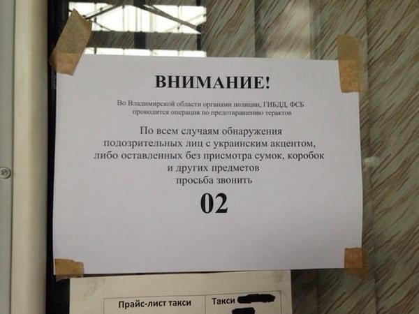 В России появились объявления, в которых россиян призывают сообщать в милицию о "подозрительных лицах с украинским акцентом".